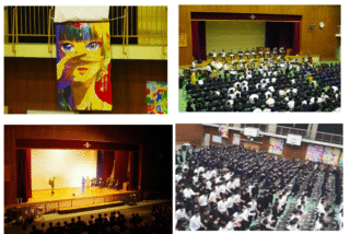 11月15日(金)に開催しました。たいへん多くの保護者や地域の方々にご来場いただき誠にありがとうございました。今年のスローガンは、「紀伊中Rainbow みんなで一つの作品を ~One for all~」です。文化発表会は、日頃の学習や練習の成果を発表する機会であるとともに、他の人の発表や展示を聞いて見て、全員が学び合う機会でもあります。午前中はまず、英語スピーチ・少年メッセージの発表、各学級で作成した「ビッグポスター」、美術部が作成した「ビッグアート」が紹介されました。