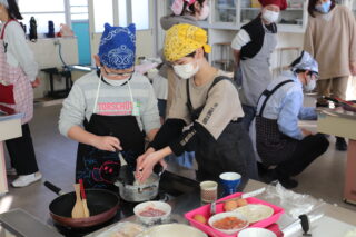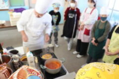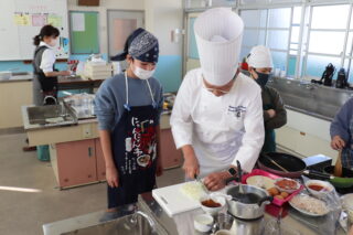 プロのシェフに来ていただき、5・6年生がシェフ体験を行いました。「チキンライスふわとろ卵ヘレカツのせ」、「トマトスープ」を作りました。シェフの技術に驚きながら、子供たちも楽しんで料理することが出来ました。