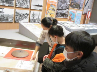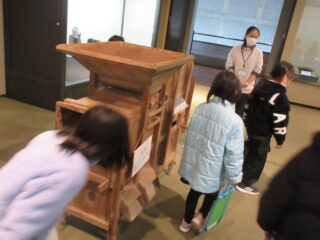 3年生が、社会科の学習で市立博物館の見学に出かけました。昔の道具について調べてきました。