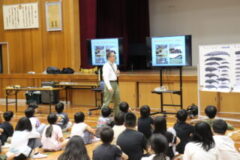 クジラ博士の出前授業 投稿日:2025年10月16日2025年10月22日 クジラ博士の安永先生に、クジラについて教えていろいろなことを教えていただきました。実物大のクジラと子供たちの背比べをしてみました。