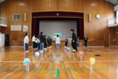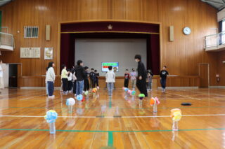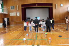 1年生の入学をみんなでお祝いしました。芦原小学校に関する○×クイズを6年生が出題してくれました。
