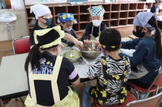 なかよし学級でパンケーキを作りました。思い思いの形に焼くことができました。