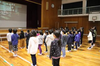 ○3・4年生の発表・・・12月に行う6校交流会の発表内容(歌と合奏)を行いました。