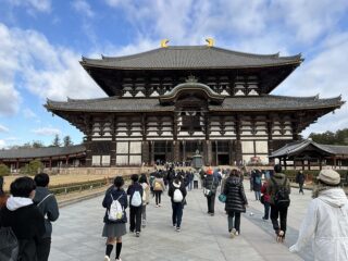 2025 修学旅行1日目③ 投稿日:2025年12月9日2025年12月9日 奈良公園に到着。子供達は鹿が自由にウロウロしている様子を見て驚いていました。 次に東大寺大仏殿で大仏を見ました。やはり実際に見ると大きいですね。