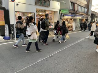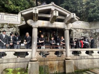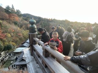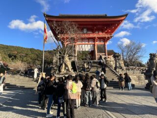 音羽の滝では「延命」「恋愛」「学業」の成功を願って、水を飲んでいました。観光客が多く、時間もないのであきらめる子もいました。その後はグループでお買い物を楽しみました。