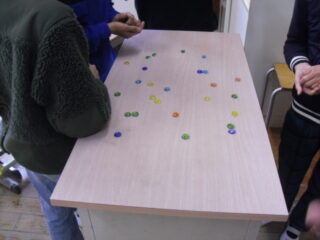 クラブ活動 投稿日:2025年12月15日2025年12月15日 でした。 体育館・教室・運動場・赤廊下など学校のあちこちでクラブ活動が行われました。 C「12ねらうわ!」 T「おしいっ!」 (モルックくらぶ より) T「判定は?」 C「ついてない、セーフ!」 (昔あそびくらぶ 「おはじき」 より)