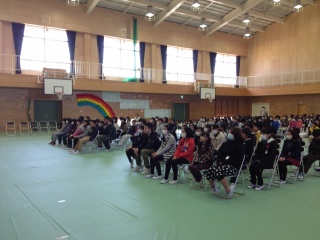 6年生をおくる集会(2月28日)では、インフルエンザによる学年・学級閉鎖でできなかった2,3年生が今日、全校の前で発表しました。