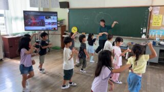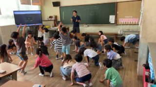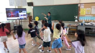 1年生の子どもたちは、運動場も体育館も使えない時間でも、教室でダンスの練習に取り組んでいました。