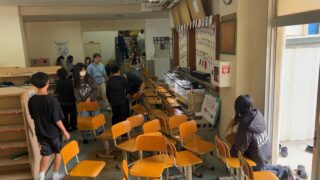 今日は午後から1~4年生は下校して、5.6年の子どもたちは各委員会に分かれて運動会の前日準備をしました。