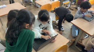 今日の6時間目、5年生の子どもたちは学級活動の時間でハロウィンパーティーの準備をしていました。