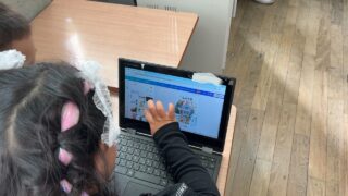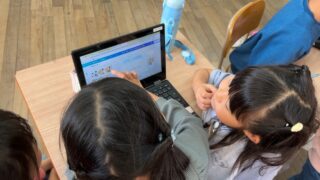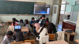 折り紙で飾りを作ったり、手形でちょっと怖いポスターを作ったり、chromeブックを使ってみんなに答えてもらうクイズを作ったり、プログラミングでゲームを作ったりしていました。