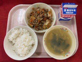 今日の給食で家常豆腐を食べた子どもたちは「めっちゃ美味しい!」「ごはんとすごく合っている!」と言って、たくさん食べていました。