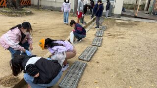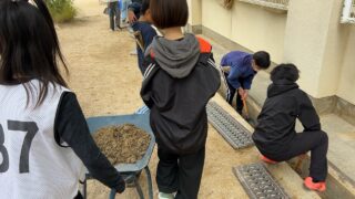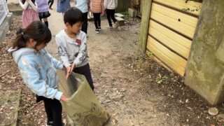 学級園の落ち葉拾いや、玄関の掃きそうじ、側溝の土すくい…、みんなとても一生懸命に取り組んでいました。
