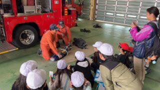 消防士の方々がどんな仕事そしているのか、消防署にはどんな車があるのかを学習することができました!