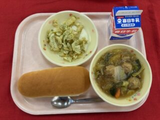 今日の肉団子と白菜のスープ煮に使われた白菜とねぎは和歌山市内で育てられました。