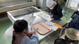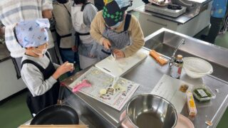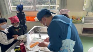 今日の1時間目、なかよし学級の子どもたちは家庭科室に集まって、調理実習をしていました。
