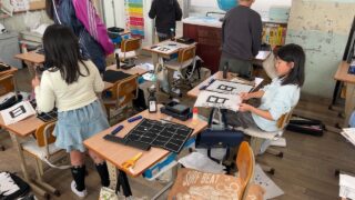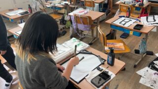 今日の4時間目、3年生の教室では毛筆の学習をしていました。