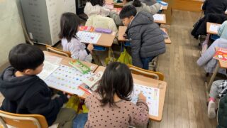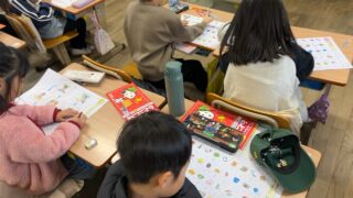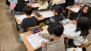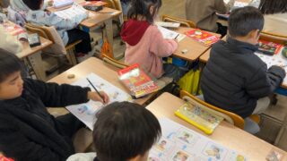 少し忘れていたカタカナもありましたが、近くのおともだちと教え合いながらプリントにカタカナを書くことができました!