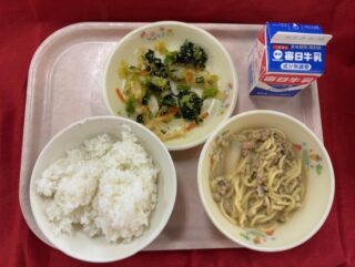 にんにくを炒めている時に、にんにくのこうばしい香りが給食室から教室まで届いていて、子どもたちが「おいしそう!」「今日のメニュー何?」と言っている声が聞こえてきました。
