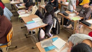 しんと張りつめた空気の中、みんな集中して清書していました。さすが高学年です!