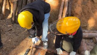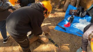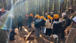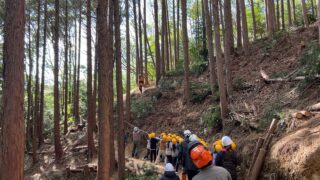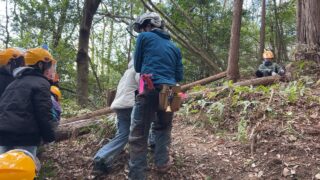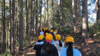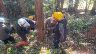 昨年は雪が残る天候だったため、実際に山の中に入ることはできませんでしたが、今年は山の中に入り間伐体験をさせてもらうことができました。