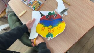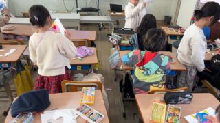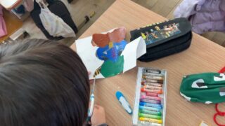 今日の5時間目、2年の子どもたちは図工の時間でおにの顔を作っていました。