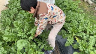 30日の「なかよしだいこん屋さん」開店に向けて、今日は自分が持って帰るダイコンを試しに収穫しました。
