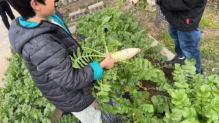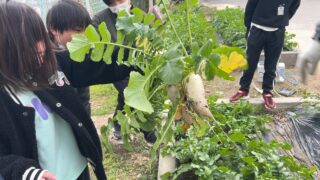 なかよし学級では春のジャガイモに続いて、冬はダイコンを学級園で育てていました。
