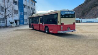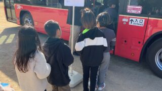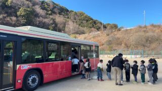 普段和歌山市内を運行している学校の近くを走っている和歌山バスが実際に運動場に乗り入れてくれて、バスの乗車体験をさせていただきました。