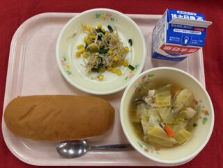 今日の給食のポトフは鶏肉、じゃがいも、たまねぎ、にんじん、キャベツ、しめじ、パセリを使用しました。