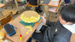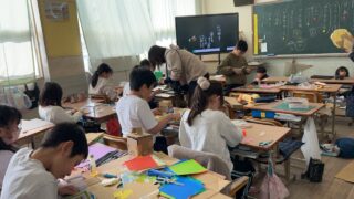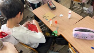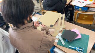 今日の3時間目、4年生の教室では図工で小物入れ作りに取り組んでいました。