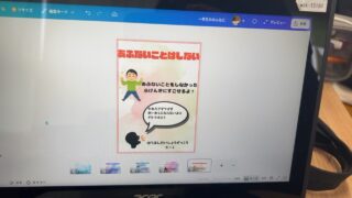 今日の5,6時間目、6年生の子どもたちは来年入学してくる1年生に、八幡台小学校のことを知ってもらうためにポスターやスライド作りに取り組んでいました。