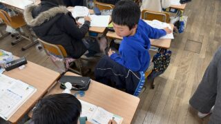 先日4年生の子どもたちは学習のまとめに取り組んでいましたが、5年生の子どもたちも算数の最後の単元の学習となりました。
