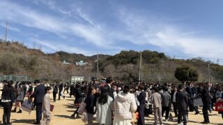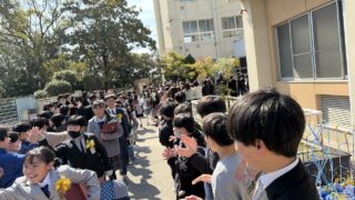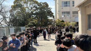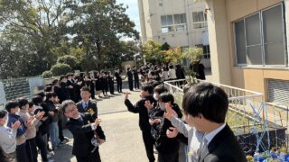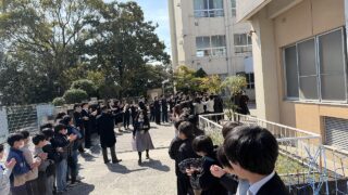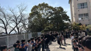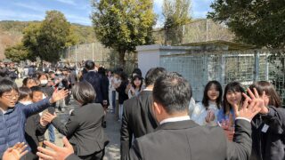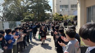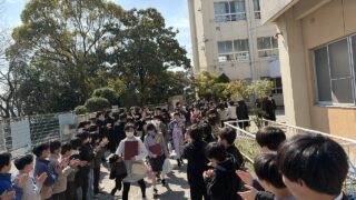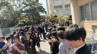 昨年とは打って変わって雲一つない晴天に恵まれて、温かくて素晴らしい式となりました。式の後には5年生と教職員で卒業生を花道で見送りました。