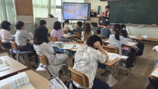 「わかやまけん」「ながのけん」先生が話した県を席が隣の友達と探しました。