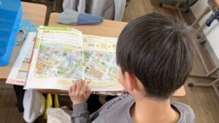 今日の5時間目、3年の教室では社会科で「地図帳」を使って学習をしていました。