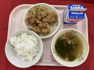 鶏肉の唐揚げはしょうがと調味料を下味につけて、片栗粉をまぶして油で揚げました。