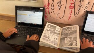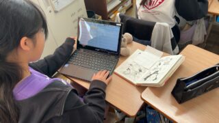 教科書の伝記を学習したうえで、自分のおすすめの伝記をどう紹介するか、chromeブックでまとめていました。