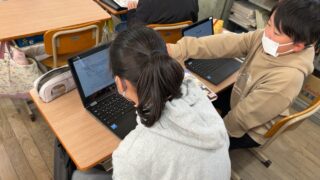 今日の3時間目、1年の教室では子どもたちがchromeブックを使ってタイピングの練習をしていました。