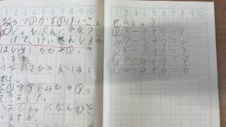 入学してから足し算と引き算を練習してきましたが、今日は3つの数の足し引きを練習しました。