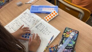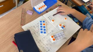 計算が終わった子は、数図ブロックで答えを確かめることもできていました。