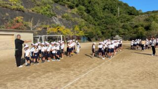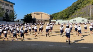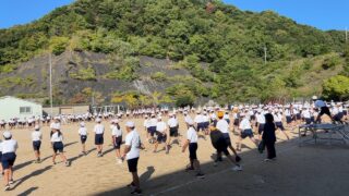 運動会の練習に力が入っている最近ですが、今日の1時間目に全校生徒が集まって全体練習を行いました。