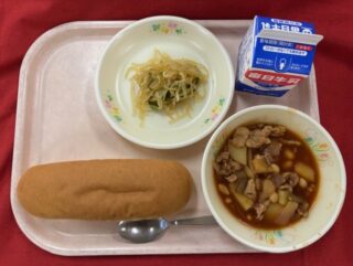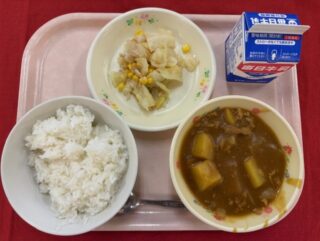給食室からカレーのいい香りがしてきて、給食が始まる前から子どもたちから「おいしそうなにおいがするー」「おなかすいた!」などの声が聞こえてきました。