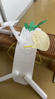 今日の5時間目、2年の子どもたちは図工の時間でおにの顔を作っていました。