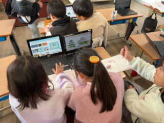 おもちゃランドで遊んでもらった後に渡す景品をchromeブックで調べながら作ったり、出し物を更によくしようと先生に相談したりしていました。