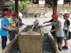 6月14日(金)2・3年生 校区巡りで山東駅・足守神社へ