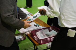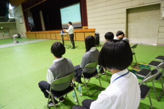受付、全体説明のあと、体育館で全体のオリエンテーション。