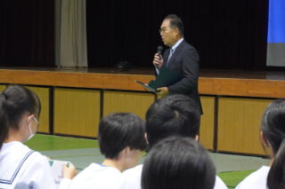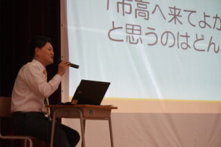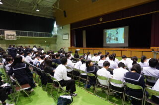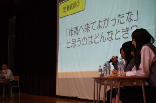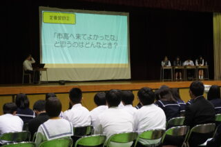 ▼普通科:体育館内で、在校生によるパネルディスカッション