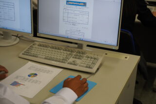 その後は総合ビジネス科、デザイン表現科、普通科に分かれて、それぞれで学科説明と授業・実習が行われました。