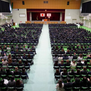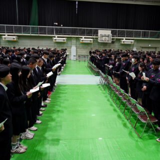 在校生が揃う体育館に入場、全員の名前が呼ばれクラス代表に卒業証書が授与されました。